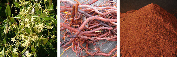 Die roten Krappwurzeln sind Bestandteil des Färberkrapps (Rubiatinctorum), aus dem Krapplacke (Alizarin) gewonnen werden kann.